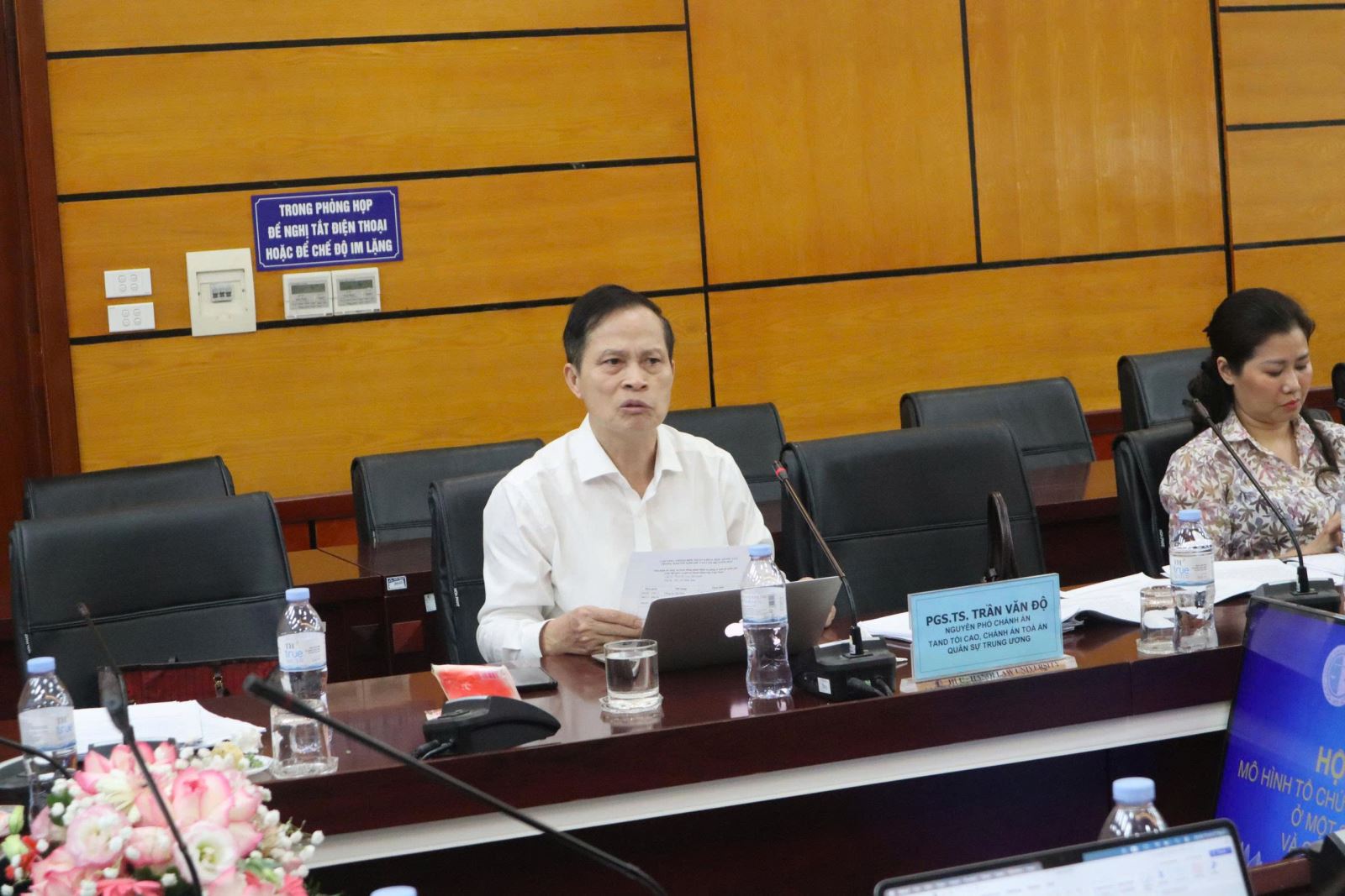PGS.TS. Trần Văn Độ, Nguyên Phó Chánh án Tòa án nhân dân tối cao, Nguyên Chánh án Tòa án Quân sự Trung ương phát biểu tại Hội thảo.
