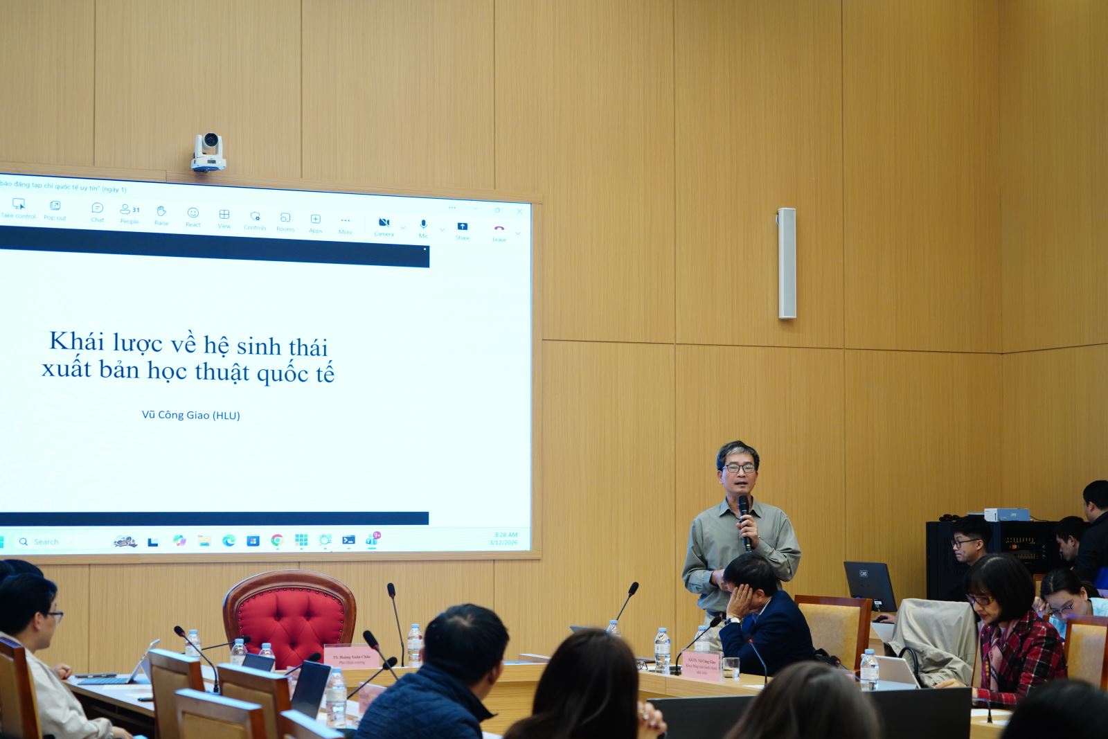 Tại Hội nghị, GS.TS Vũ Công Giao đã trình bày chuyên đề “Khái lược về hệ sinh thái xuất bản học thuật quốc tế”, cung cấp cái nhìn tổng quan về các hệ thống cơ sở dữ liệu học thuật, quy trình xuất bản và các xu hướng phát triển trong công bố khoa học toàn cầu.